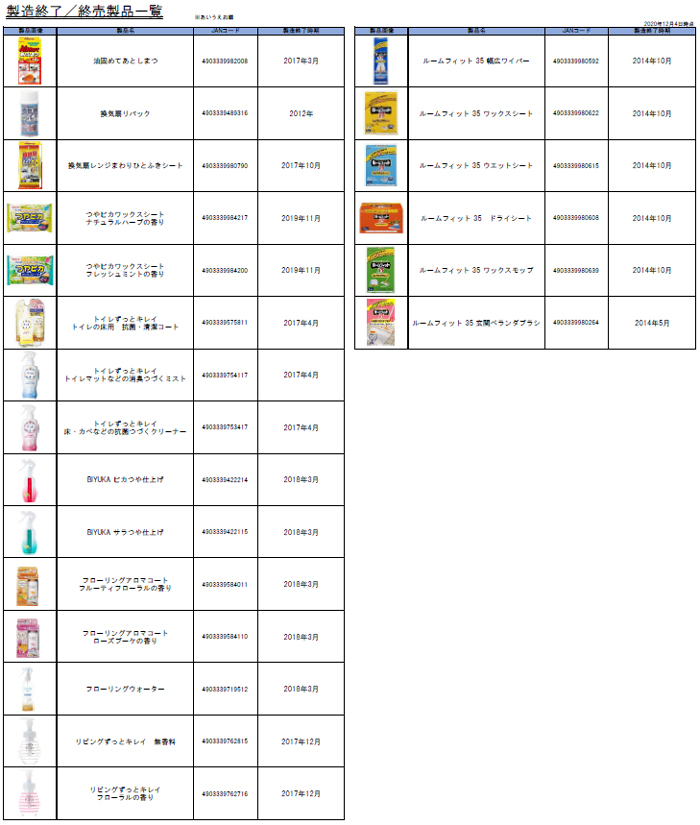 長い間ご愛用有難うございました。このページおよび一覧表にない製品につきましては【お問い合わせ一覧】までお問い合わせください。