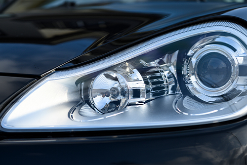 経年とともに黄ばみやくすみが生じる自動車のヘッドライト。